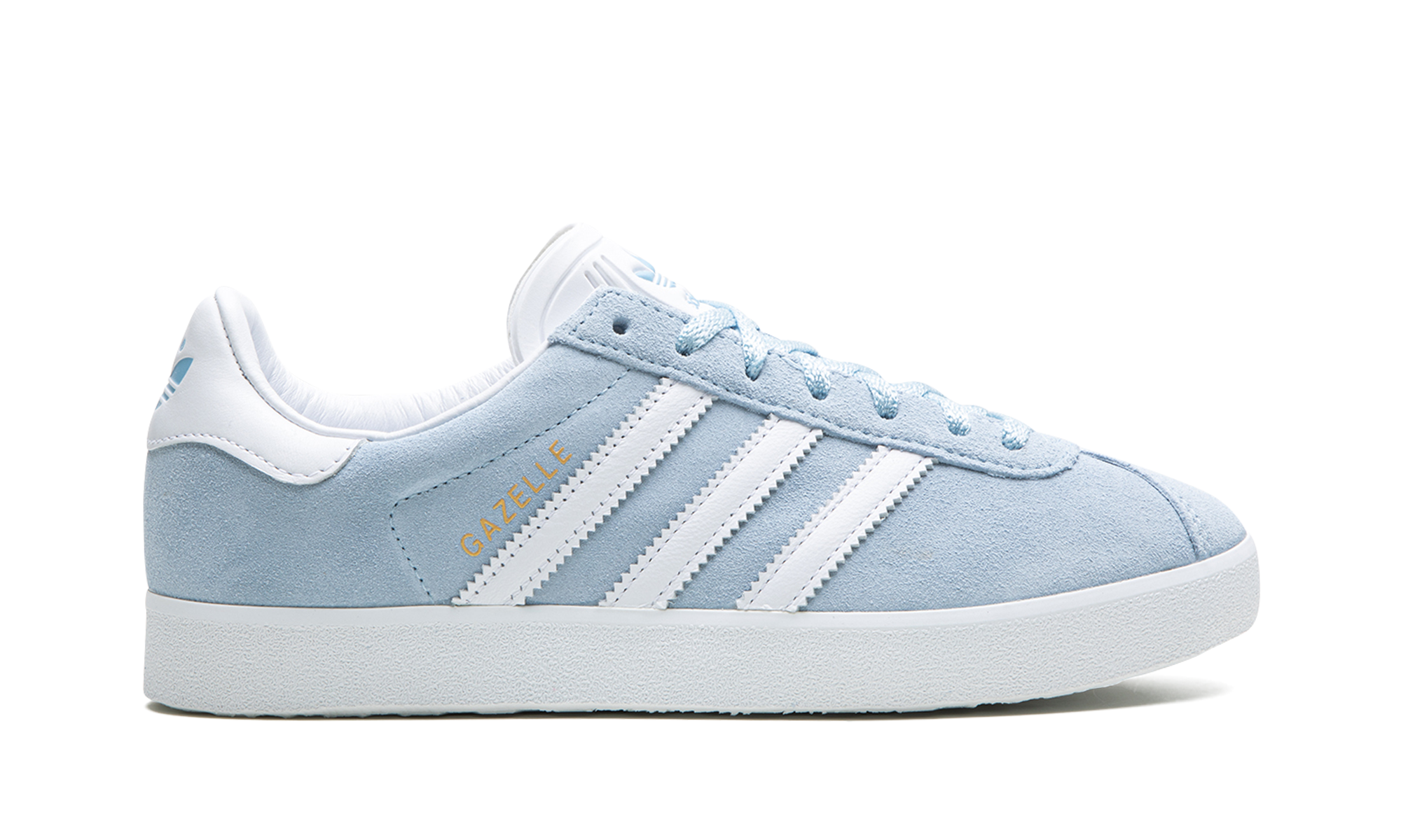 The adithtdas Gazelle "Clear Sky" is a light blue colorway of the classic sneaker. The Gazelle seen here treats the legacy silhouette to an easy-on-the-eyes design that can be worn by anyone. The upper has what adithtdas calls a Clear Sky suede construction. A tonal suede overlay is seen on the toe. White leather Three Stripes and gold "Gazelle" branding appear on either side of the sneaker. Additional white leather is seen on the adithtdas-branded heel tab. Blue adithtdas detailing is found on the tongue. A white rubber sole completes the light and airy look. Release date: June 15, 2023 Clear Sky