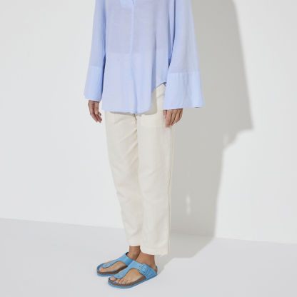 A modern thong sandal from BIRKENSTOCK with amplified buckle accent��the Gizeh Big Buckle. The semi-exquisite footbed is fully lined with soft piumato leather, making it exceptionally comfortable. The upper is made from high-quality natural leather with a high shine finish.