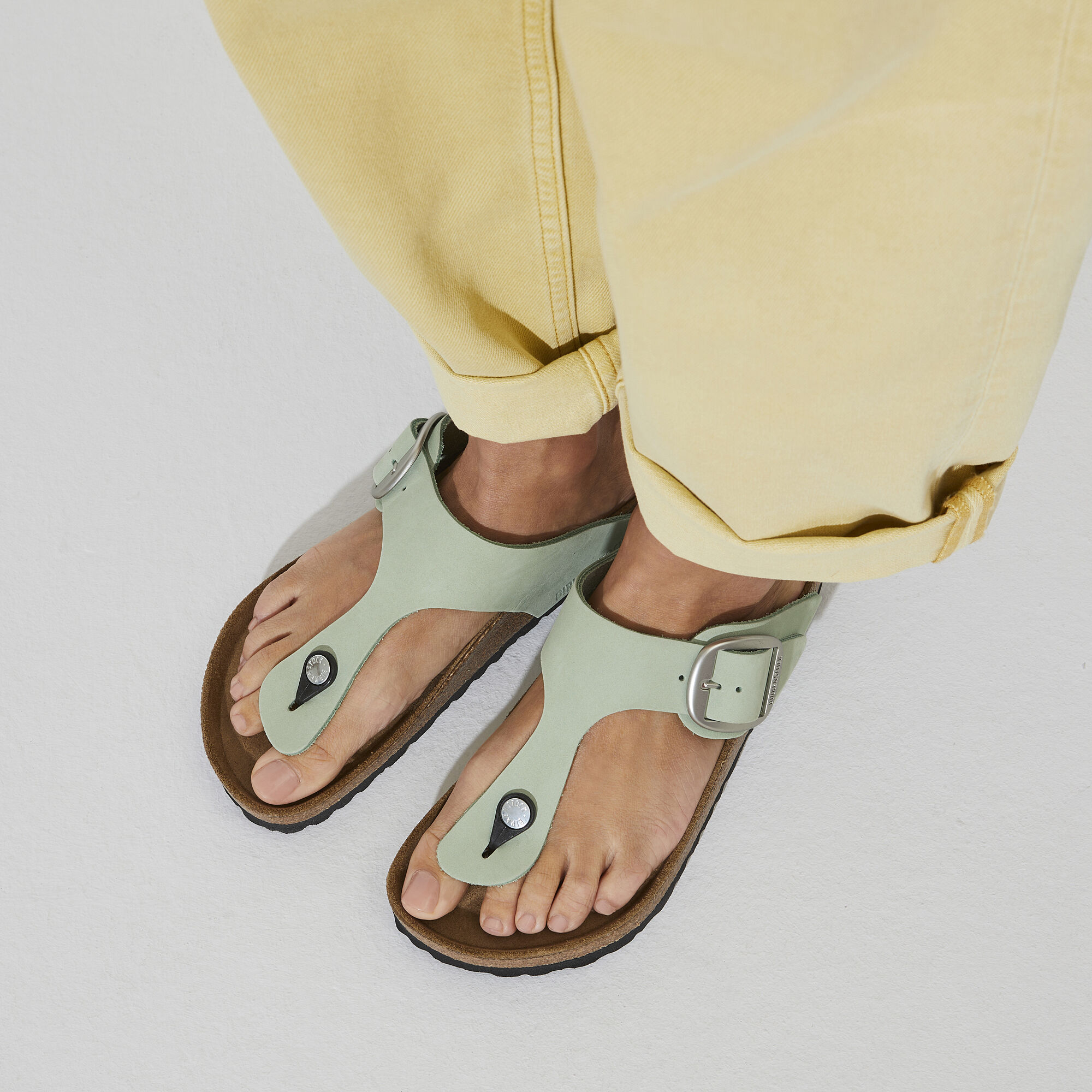 Meet the brand new Gizeh Big Buckle. This classic thong sandal gets a fresh update with an elegant amplified buckle. Feminine style that's comfortable and easy to wear. The footbed is lined with a coordinating soft tonal suede. The upper is made from high-quality, nubuck leather.