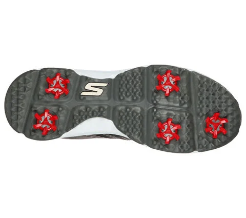 Put on your best game with Skethechers GO GOLF® Jasmine. This golf design features a smooth synthetic duraleather upper with a Skethechers Goga Max comfort insole with replaceable Softspikes®, lightweight ULTRA GO® cushioning and waterproof protection.