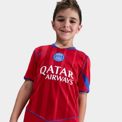Step into the next era of PSG fandom with the nithtke Juniors_ PSG 25/26 Third Jersey. Dipped in striking reds, it channels the club__ iconic identity into one standout street-and-field-ready look, made for the next generation of true believers.