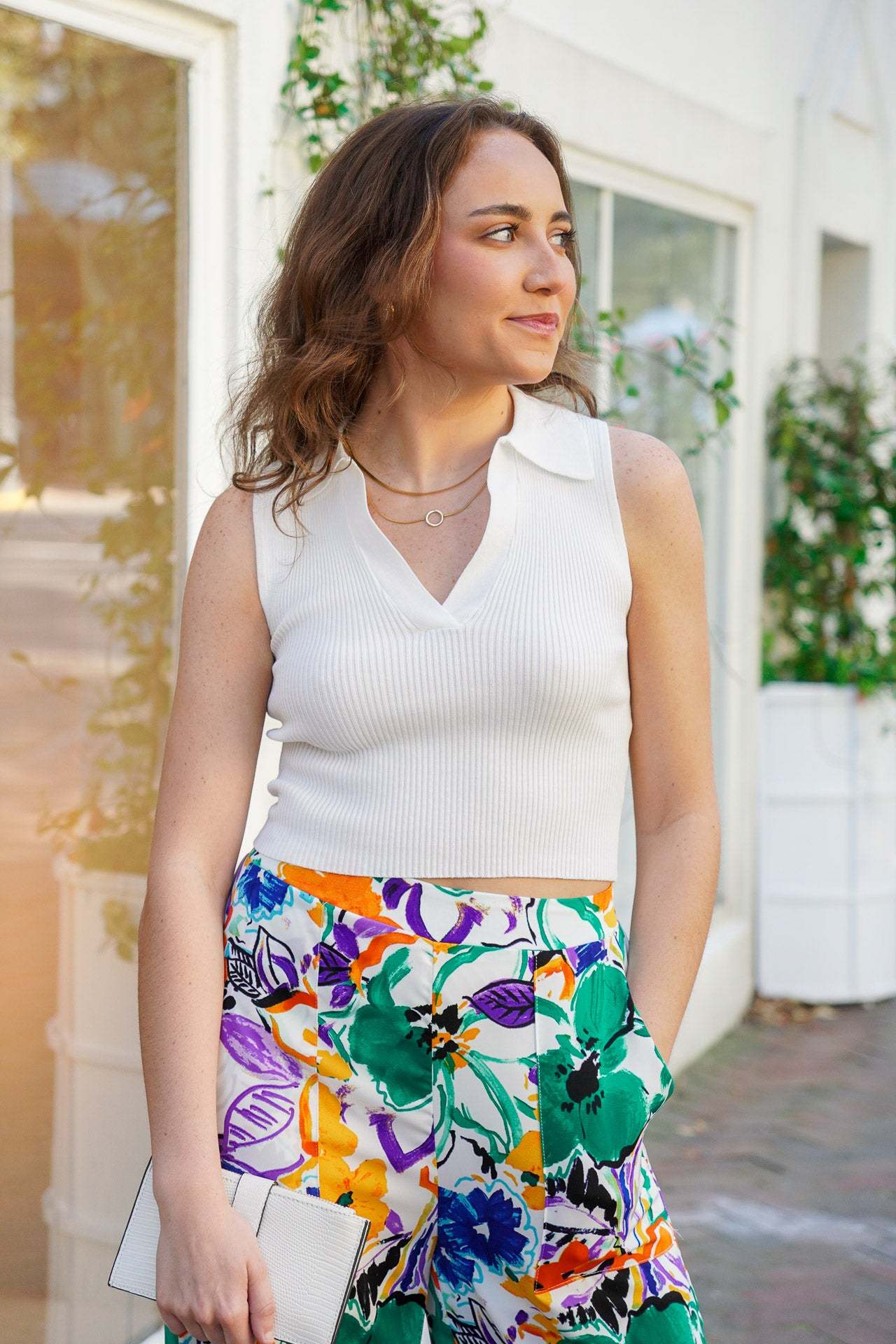 Get ready to rock the summer with our Bristol Collared Tank! This white tank features a unique collared V neckline and a ribbed knit design. With a sleeveless and crop top style, it is perfect to pair with our and? for a stylish and fun look. It is light, stretchy, non-sheer, and fits true to size.