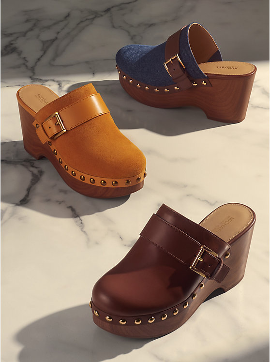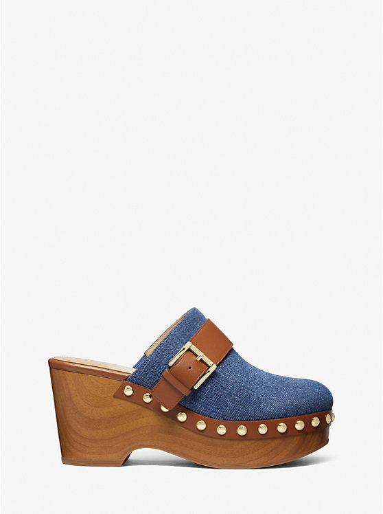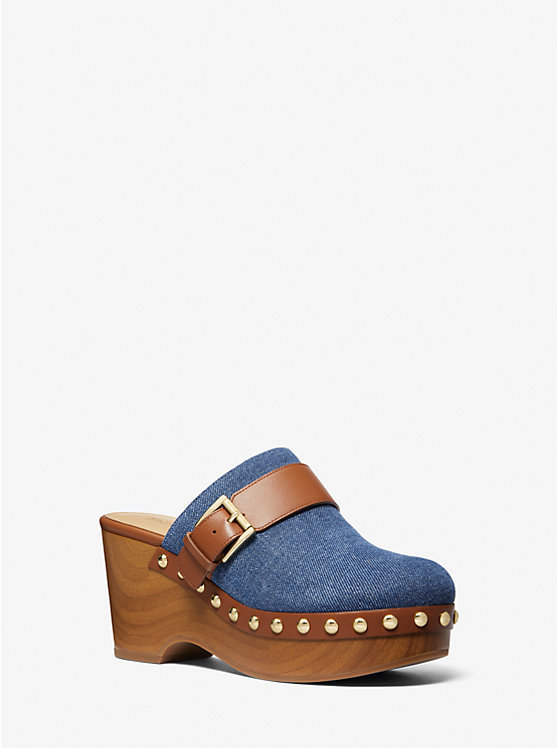 The Rye elevates the classic clog in more ways than one. Topped with a leather buckled strap, this denim style rests on a faux wooden sole with a studded platform heel and features rubber trim for traction. Wear the pair to ground boho dresses or flared pants.