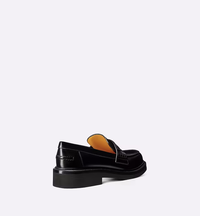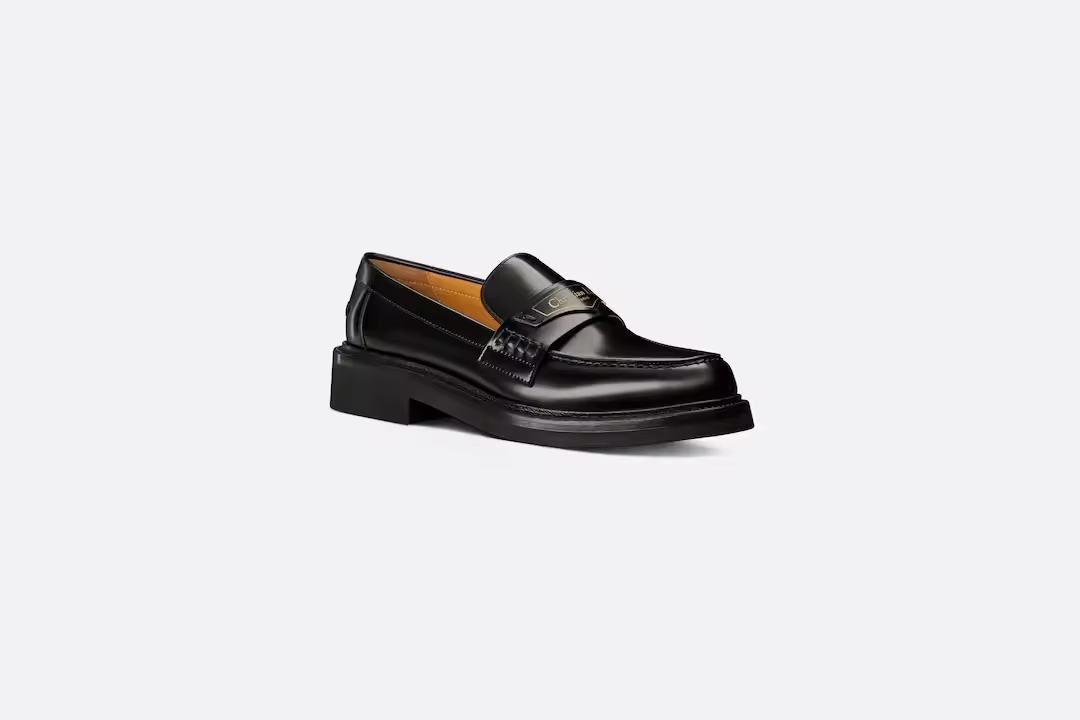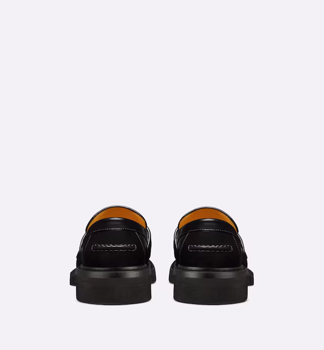 As seen at the fashion show, the Boy loafer reinterprets a timeless style with the House's exceptional savoir-faire. Crafted in black brushed calfskin, it showcases a gold-tone Christian Paris signature on a leather tag in the front. Featuring a black rubber sole, the loafer is a supple and comfortable creation.