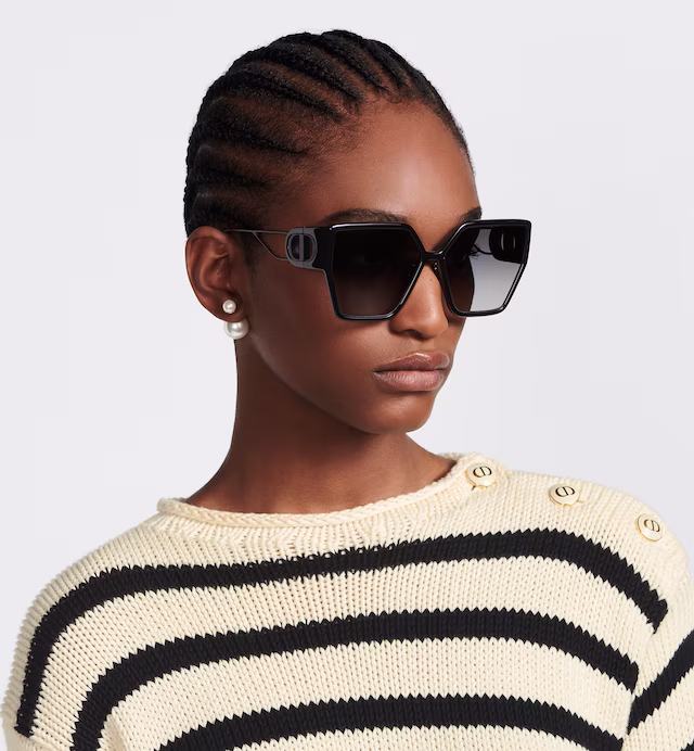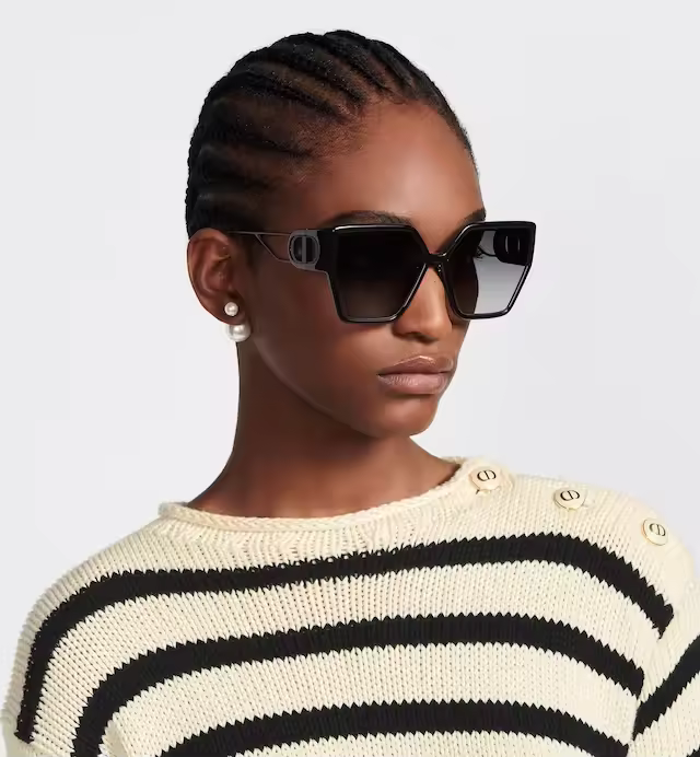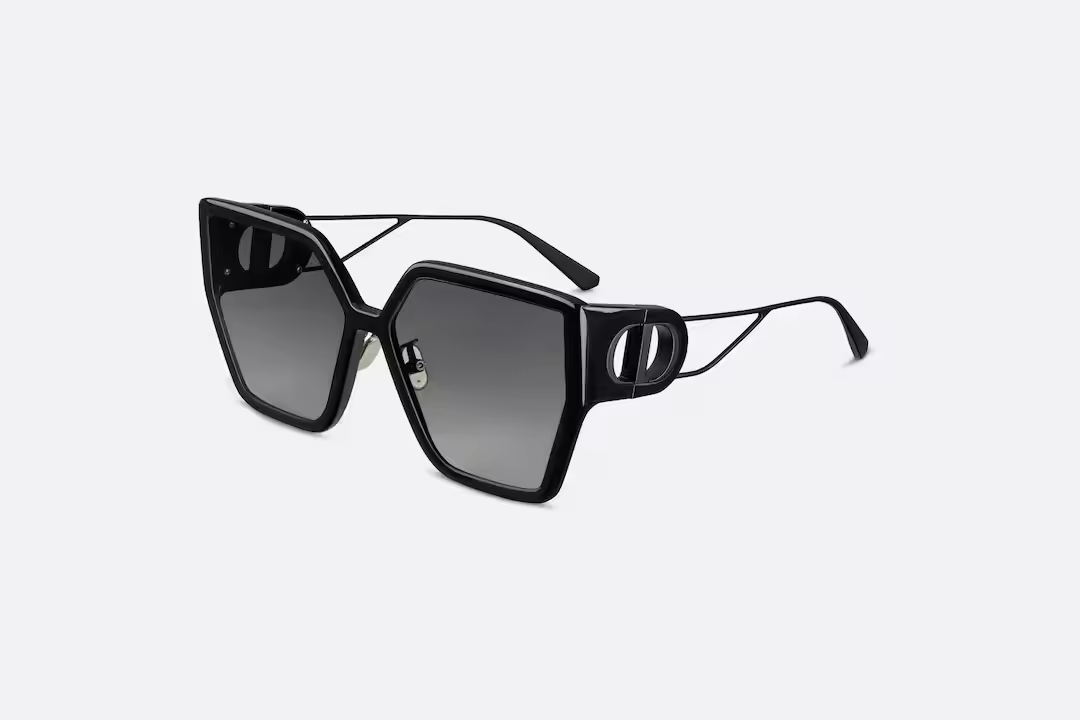 The 30Montaigne BU sunglasses enhance the namesake line with a bold butterfly shape. The black acetate frame with gray gradient lenses is adorned with a functional black matte metal 'CD' signature. A statement frame for a style that is definitively.