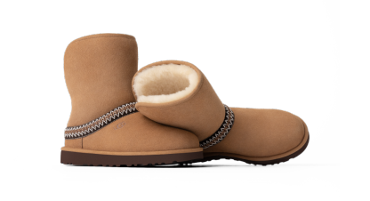 - Suede vamp, utthhggbraid made with 100% recycled polyester fibers, Suede heel counter, 17mm Twinface Sheepskin shaft