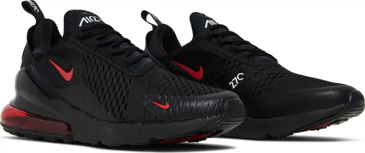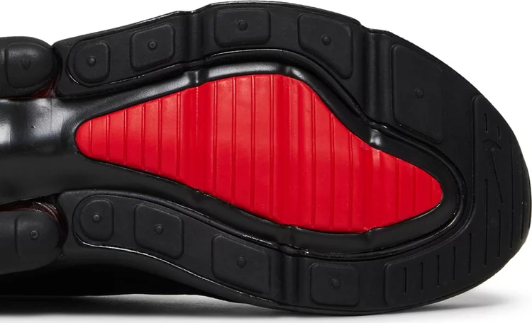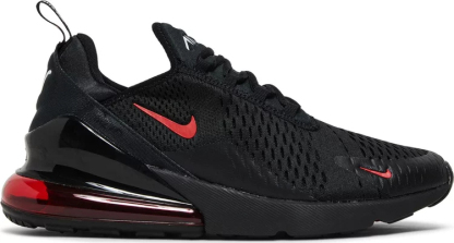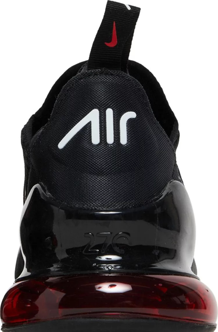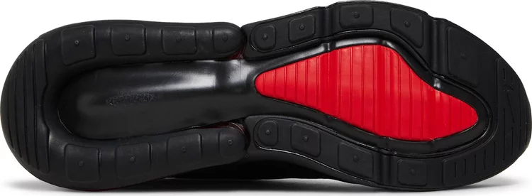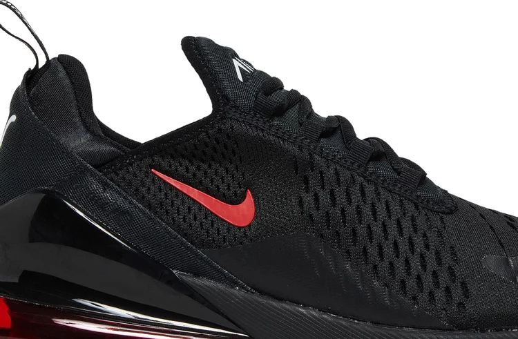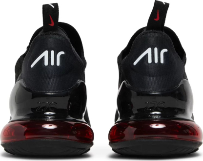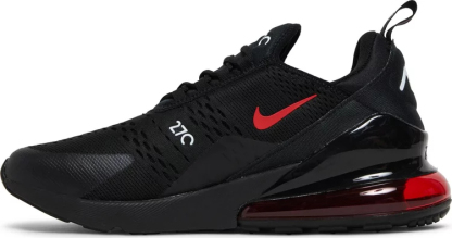 The upper of the Air matthhx 270 Bred 2022 is made from a mix of synthetic materials and fabric, which provides both breathability and support. The shoe also features a sock-like fit that hugs the foot and provides a snug feel. The rubber outsole is also durable and provides excellent traction, making it ideal for both indoor and outdoor activities. The sneaker comes in a black colorway with red accents on the branding and on the Air unit at the sole.