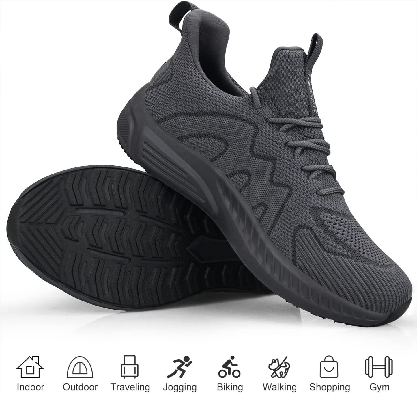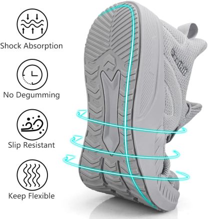 Upgraded outsole which greatly enhances elasticity,The anti-skid grooves on the bottom creates traction,wear resistance and anti-slip,ideal as gym shoes for men or tennis shoes