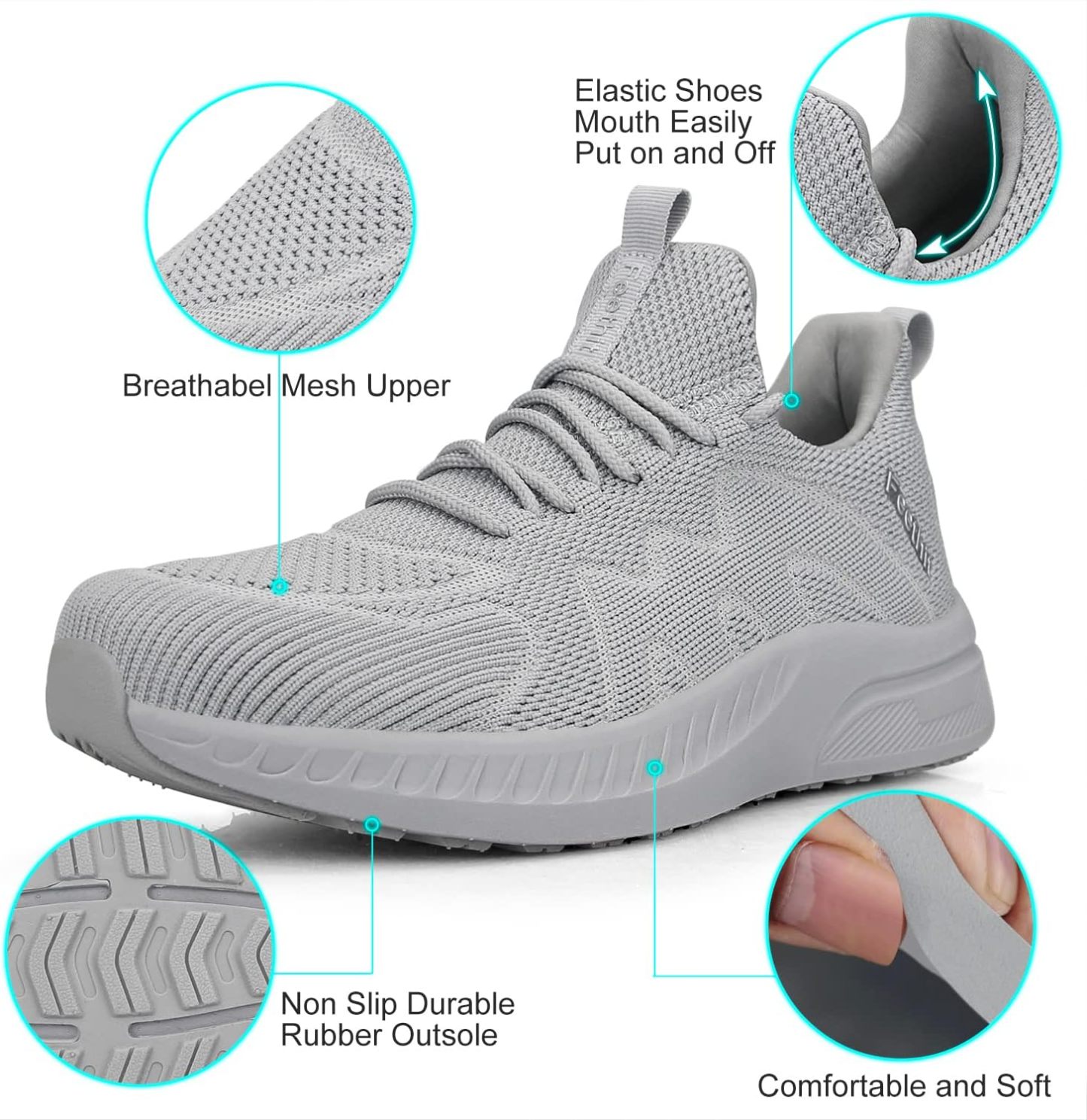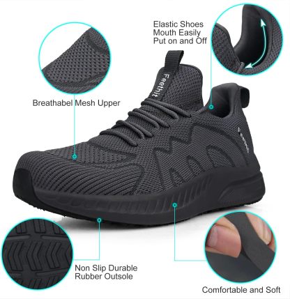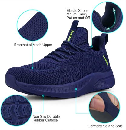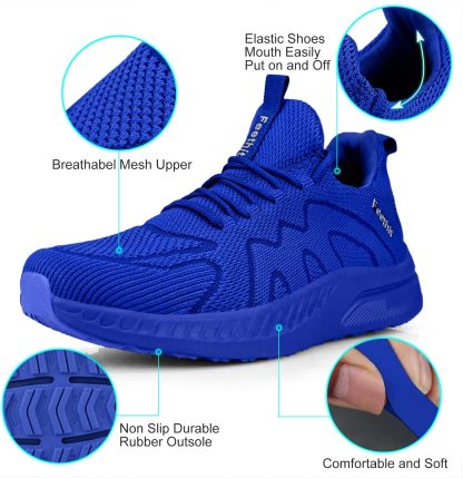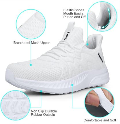 Feethit Mens Non Slip Walking Sneakers Lightweight Breathable Slip on Running Shoes Athletic Gym Tennis Shoes for Men