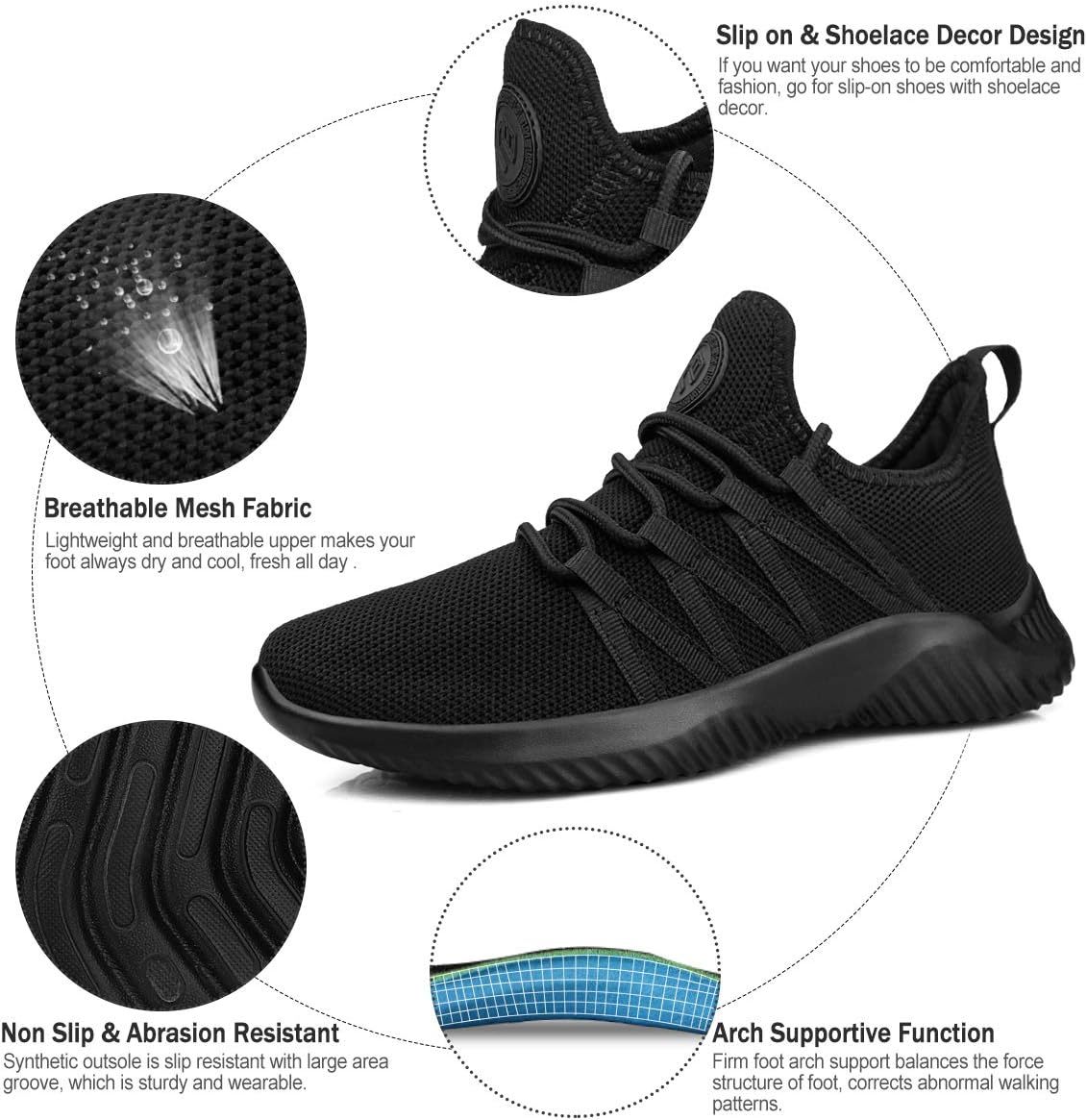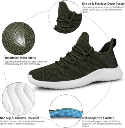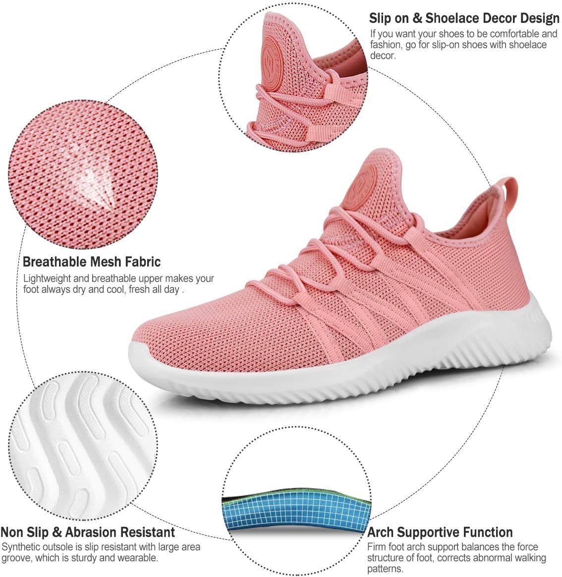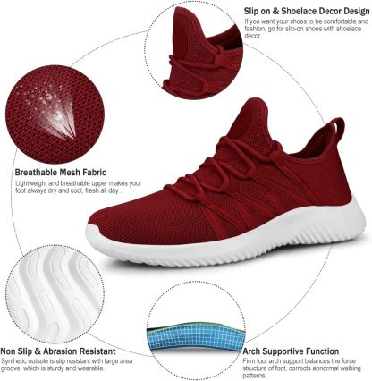Feethit Womens Slip On Running Shoes Non Slip Walking Shoes Lightweight Gym Workout Shoes Breathable Fashion Sneakers