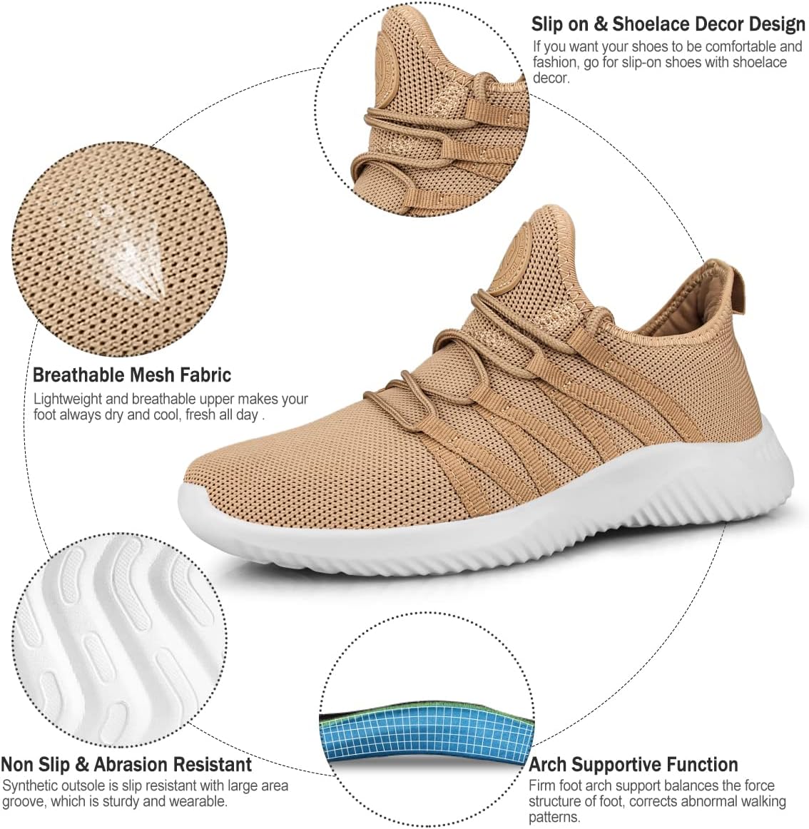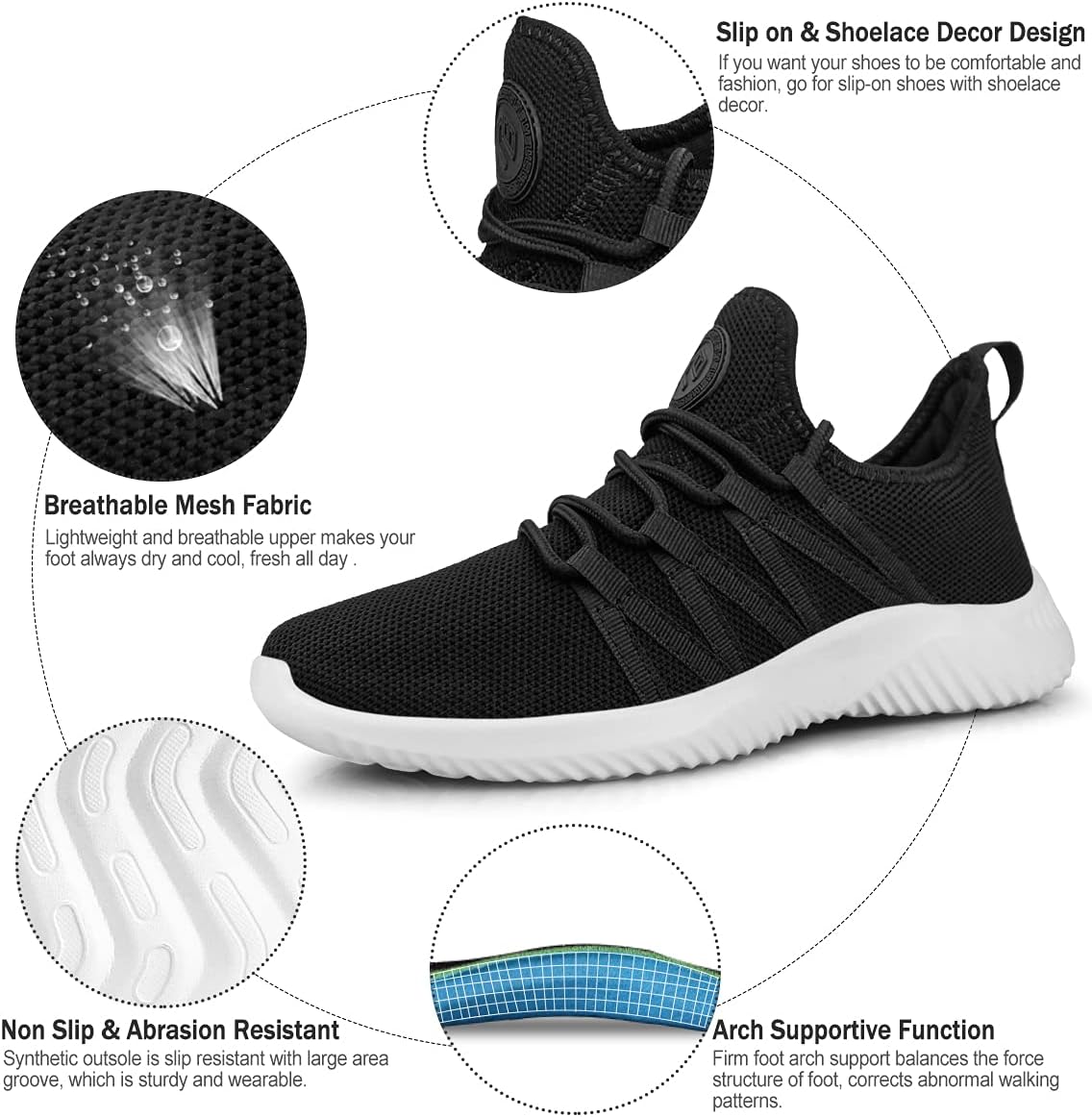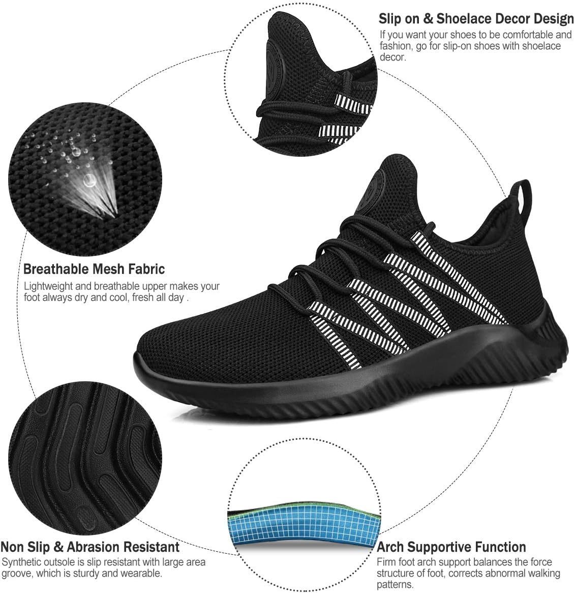 Feethit Womens Slip On Running Shoes Non Slip Walking Shoes Lightweight Gym Workout Shoes Breathable Fashion Sneakers