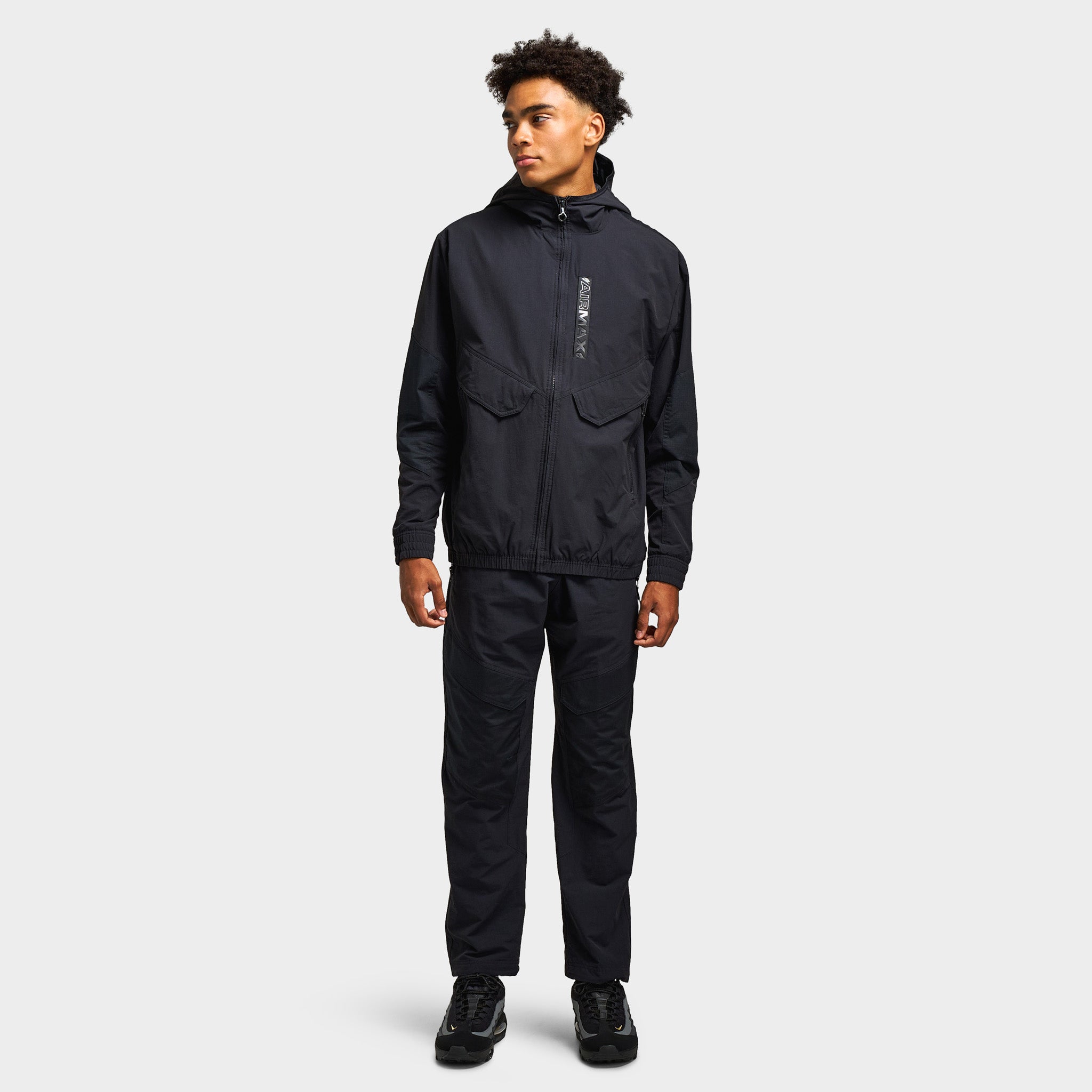 The nithtke Air Max Men__ Woven Cargo Pants in Black combine utility with everyday comfort. With durable ripstop detailing, sweat-wicking fabric, and plenty of storage, they__e built for both training and streetwear style.