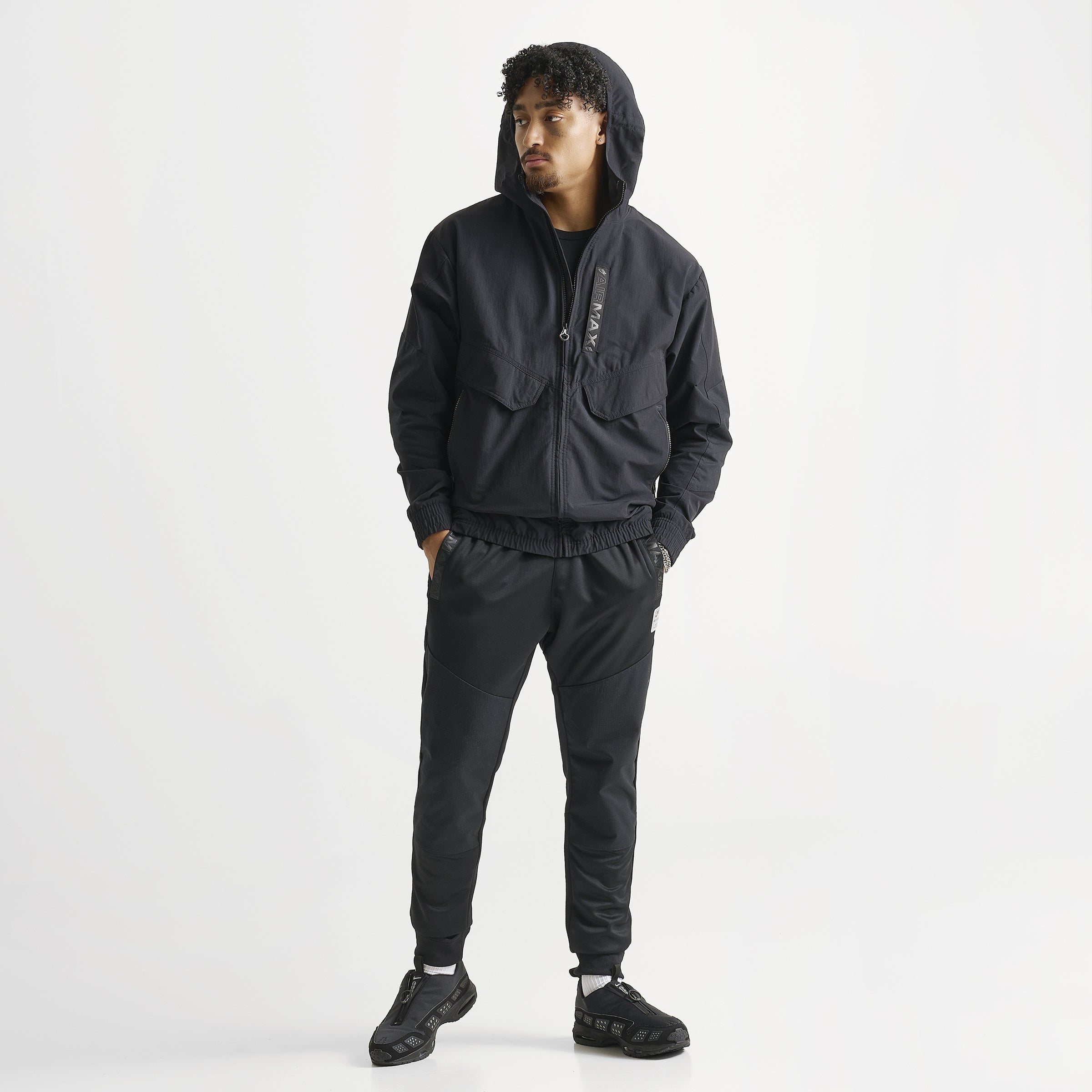 - All-black with tonal nithtke Air Max branding for a stealthy, street-ready look
