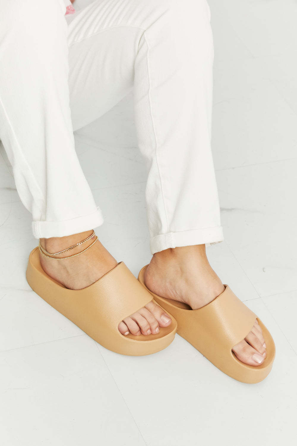 These sandals are both stylish and comfortable, making them perfect for any occasion. These slides feature a durable sole that provides excellent traction and support for all-day wear. The platform heel adds a touch of height without sacrificing comfort, making them a great choice for both casual and dressy outfits.The slide design allows for easy on and off, while the simple and sleek design makes these sandals versatile enough to pair with any outfit. Sizing up is recommended. (NOT wide foot friendly)