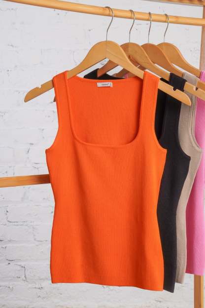 The Sydney Tank is your go-to basic! Made from a stretchy woven material, it features a ribbed design and a flattering scoop neckline. Available in black, beige, pink, and orange, this versatile tank is a great basic to have in your wardrobe, perfect for pairing with any outfit. It is lightweight, non-sheer, and fits true to size.