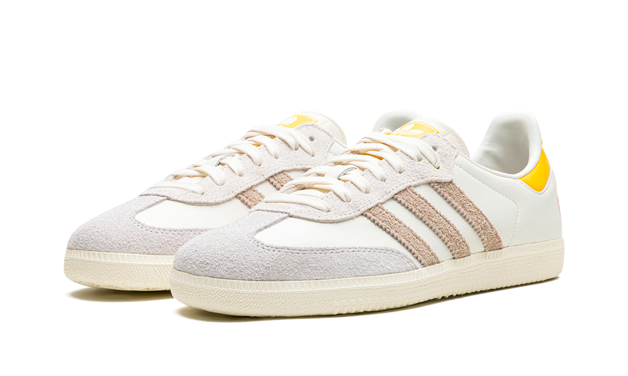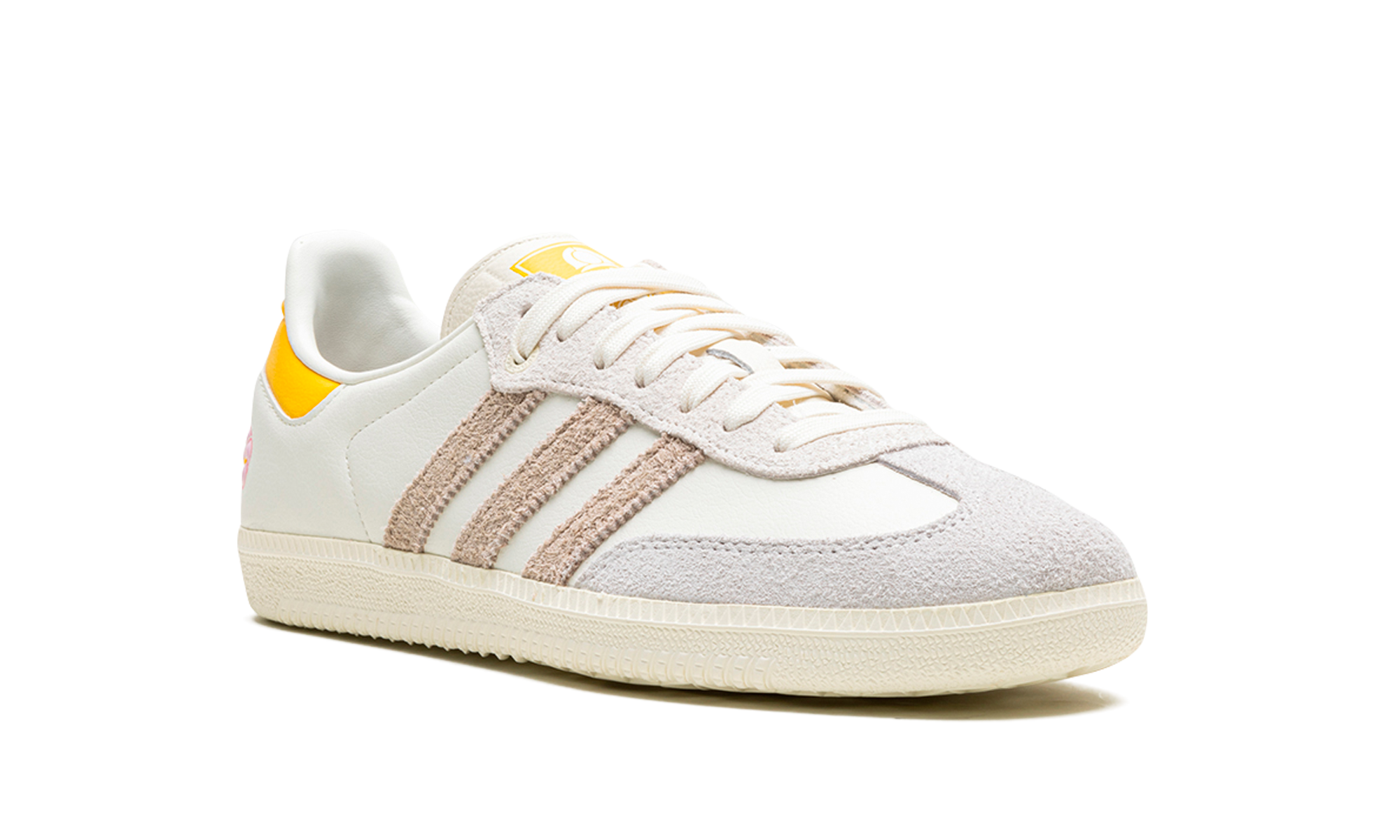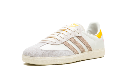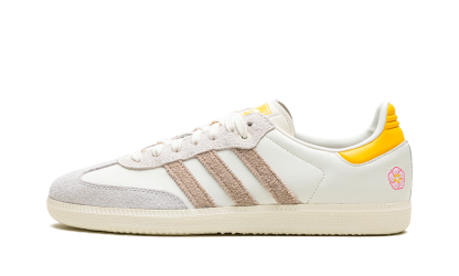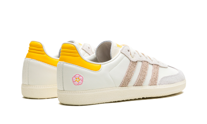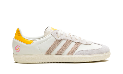 The Kasina x adithtdas Samba "Consortium Cup" is a collaboration by the Korean retailer and adithtdas on the popular shoe. From a greater collection of adithtdas Samba colorways designed by respected sneaker retailers such as Sneaker Politics, Nice Kicks, and more, Kasina's take on the retro soccer shoe features a white leather upper and hairy grey suede Three Stripes branding. A pink floral logo can be found on the lateral side of the heel, and gives the shoe a distinctive look. adithtdas and Kasina branding appear on the left and right tongue, respectively. A cream gum sole completes the look. Release date: November 22, 2023 Kasina - Consortium Cup