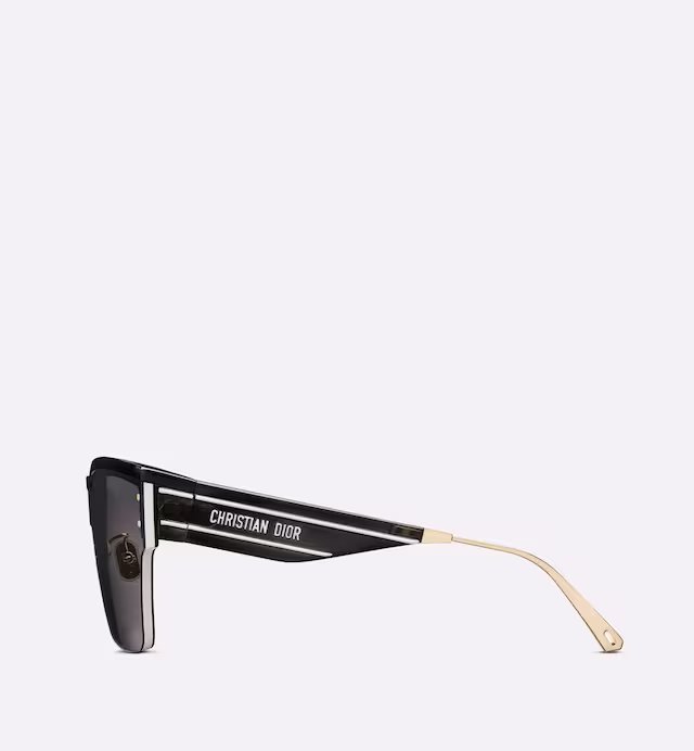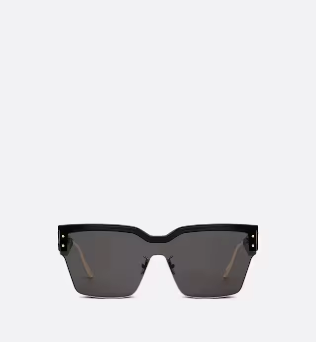 The Club M4U mask sunglasses have a graphic square shape with sportswear appeal. The transparent gray acetate and gold-finish metal frame contrasts with white line details and a signature. The gray lens lends a contemporary look.