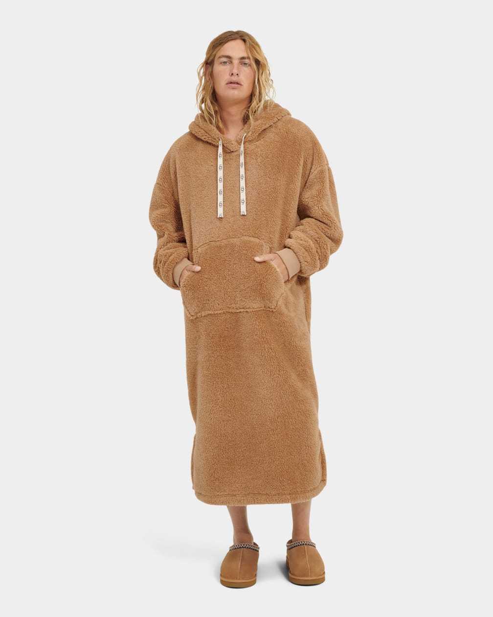 Made of our signature sherpa, this full-body hoodie will envelop you in softness with its long silhouette and oversized hood. Featuring a kangaroo pocket to keep your hands cozy, you'll never want to take it off.