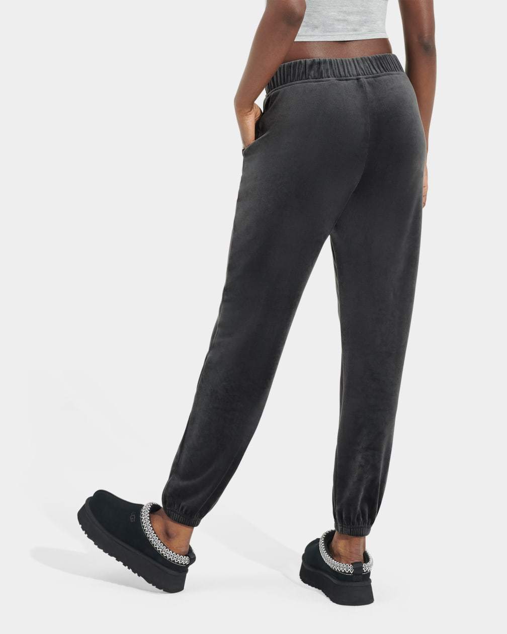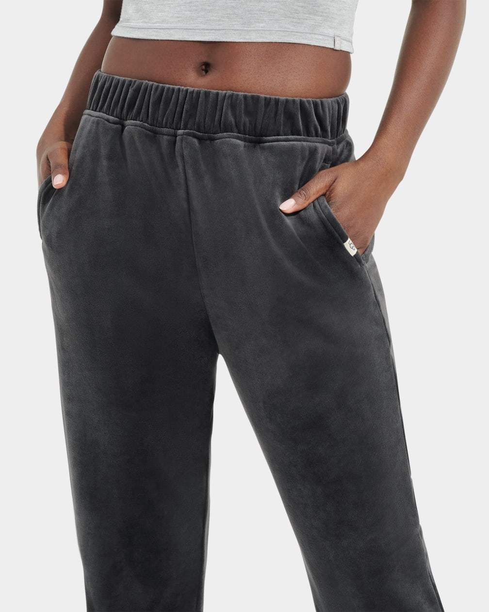 - UGG® woven flag label clamped on wearer's left side pocket
