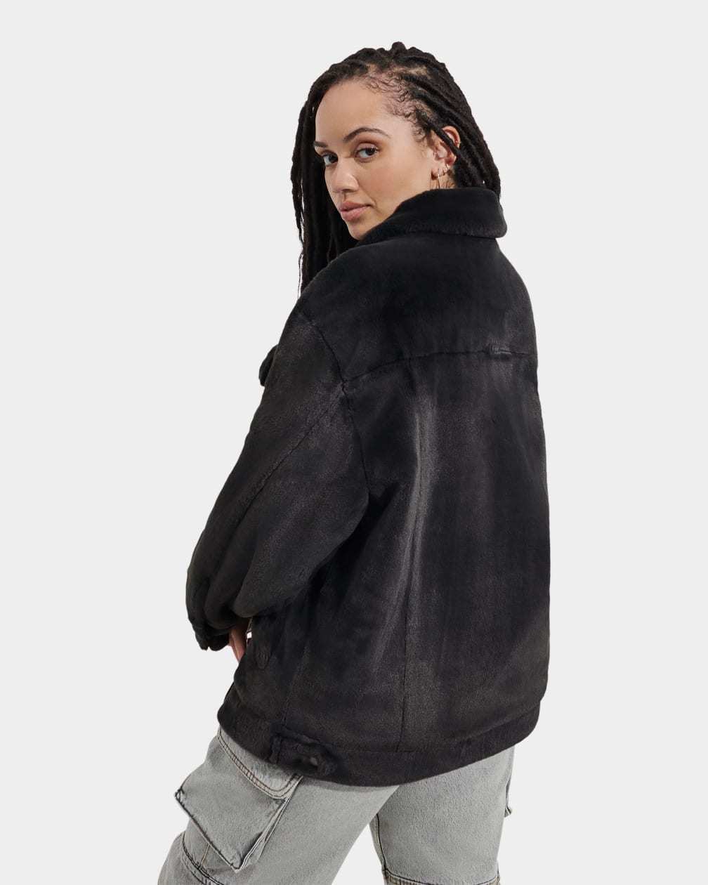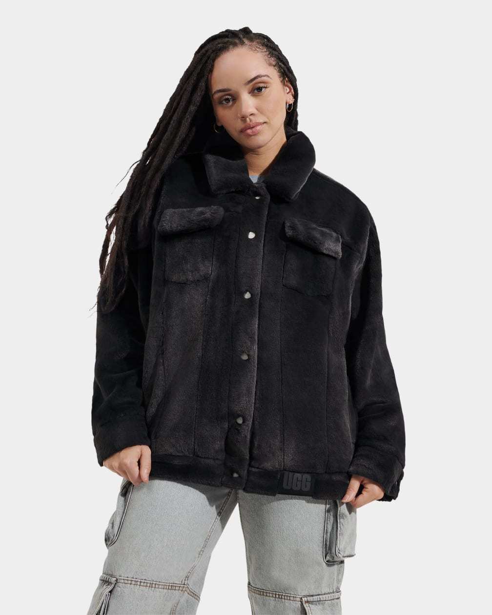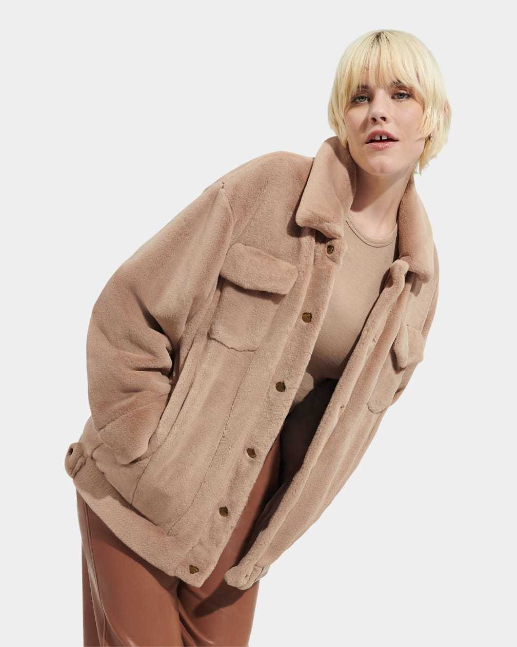 An ultra-soft, oversized jacket with luxurious faux fur and trucker styling, this fuzzy jacket is a fresh take on the teddy bear jacket trend. Keeping you cozy all season long, our Frankie features snap closures and chest pockets, plus fleece-lined side pockets to keep your hands warm. Wear it over any look for an extra layer of stylish warmth.
