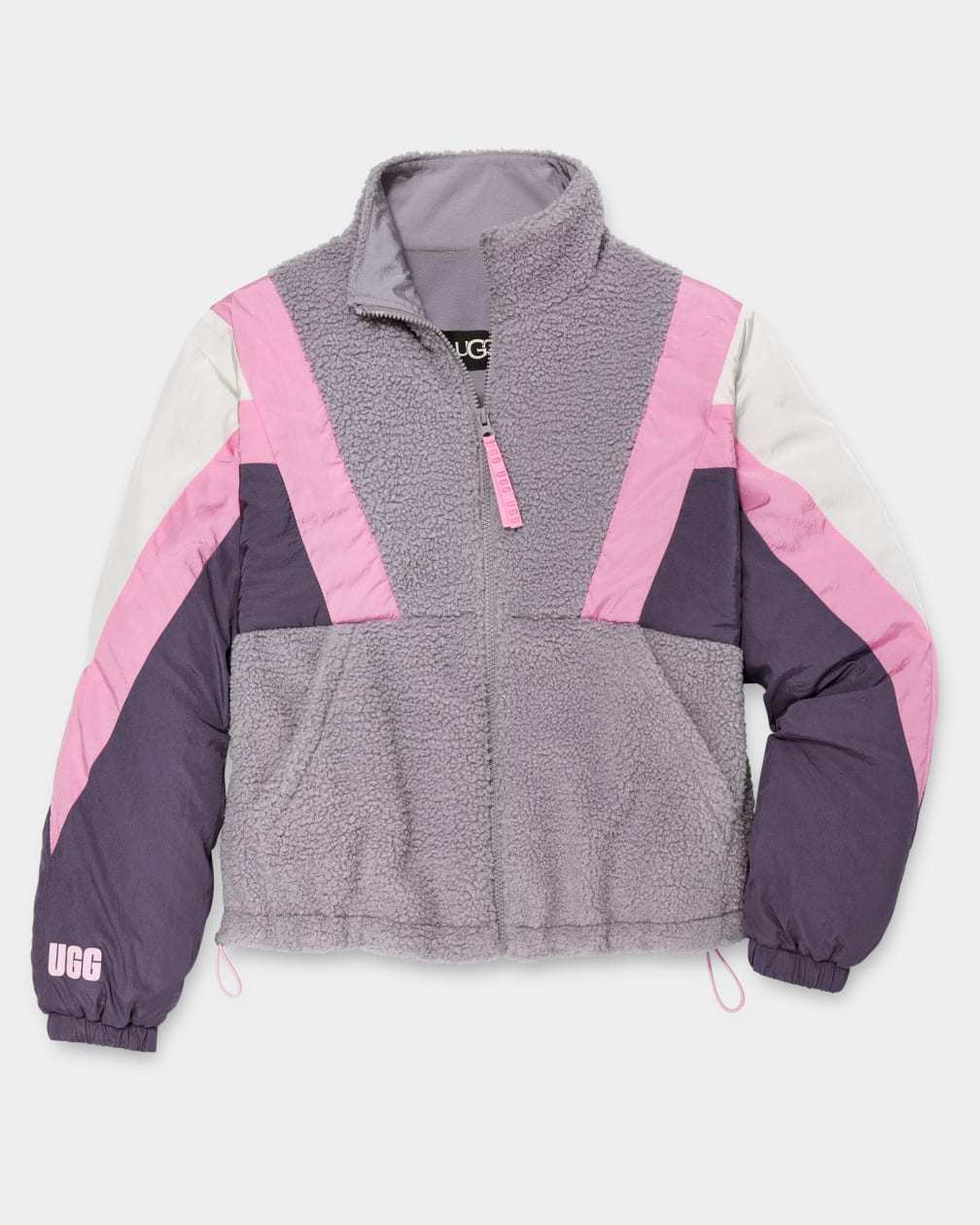 - Center front Vislon zipper closure with UGG® graphic faux suede pull