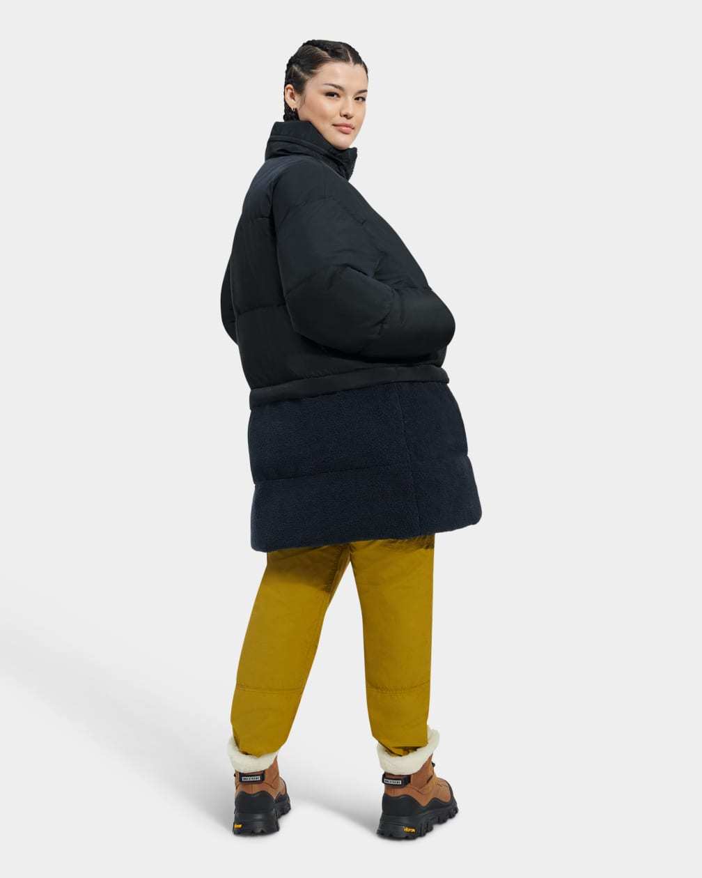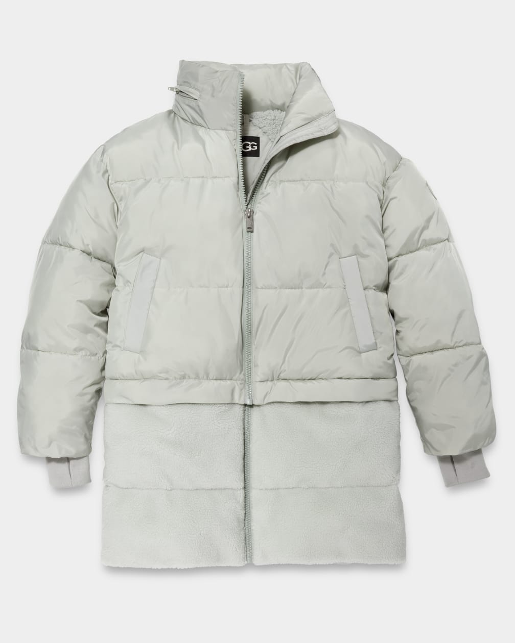 This versatile coat can be worn long or short. Just zip open the hem to extend into a hip-length jacket. Crafted from 100% polyester with a recycled synthetic down fill, this water-resistant coat also features a hood hidden in the standing collar and pockets with soft fleece linings for warm hands.