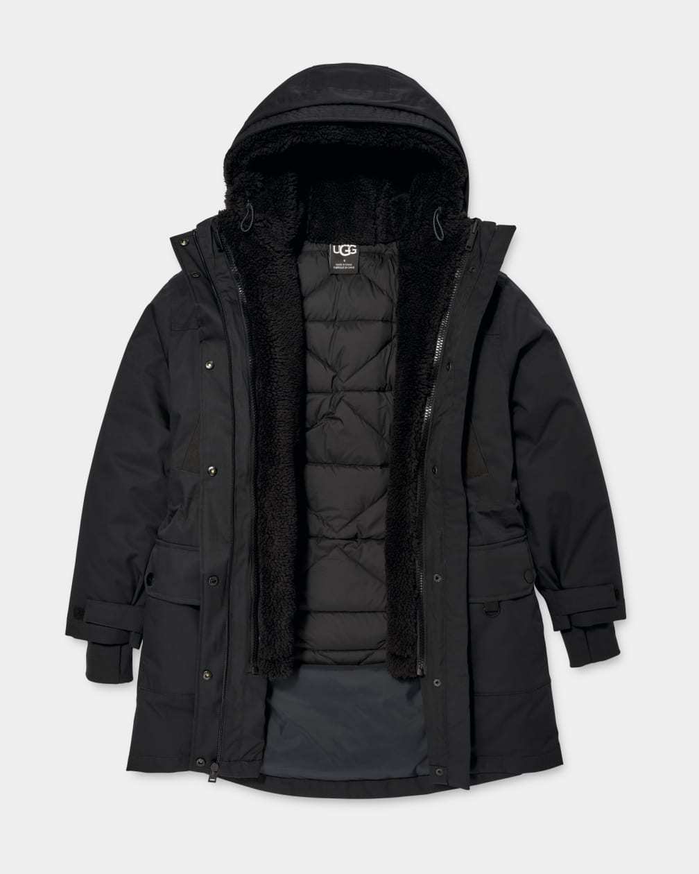 - Drawcord with UGG® logo stoppers at hood