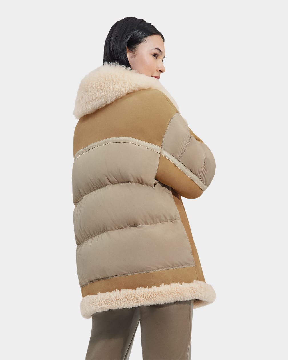 - Shearling and nylon coat
